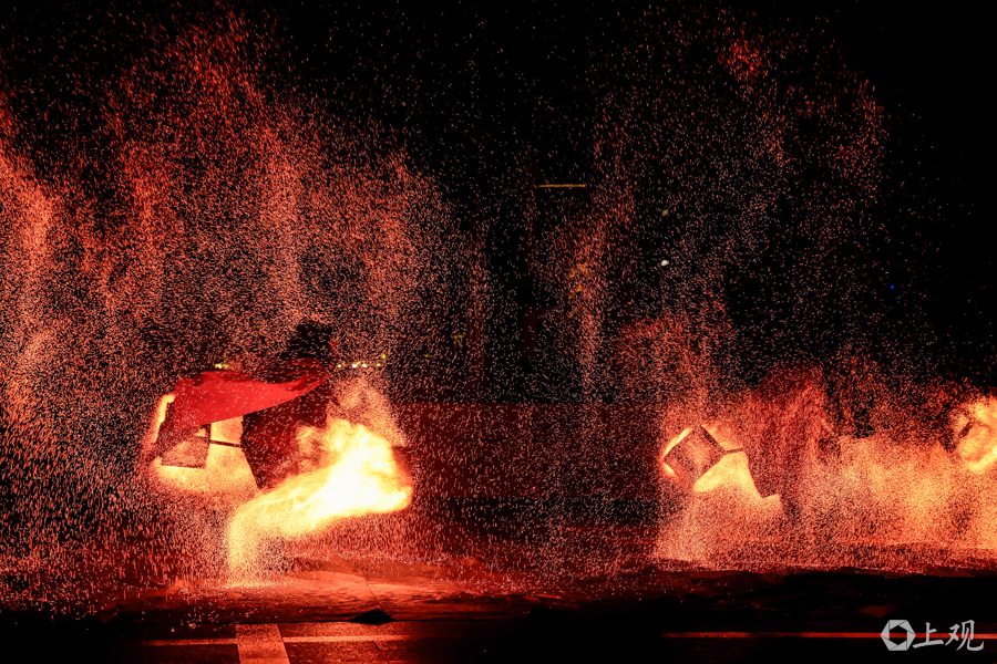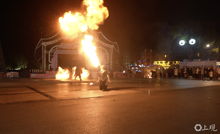 非遗火舞表演。